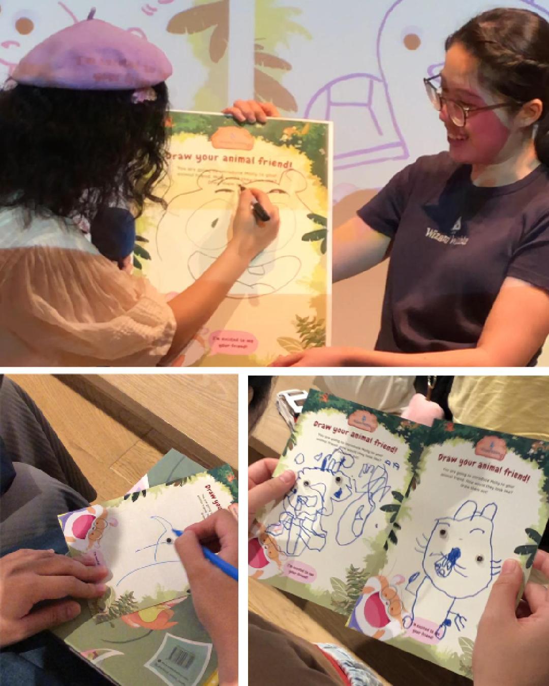 After the sharing, now it was the crowd’s turn to imagine Molly’s story! A mini-game was conducted where audiences were given a card with assorted placements of googly eyes and tasked to draw different rainforest animals that corresponded with the eyes for Molly to befriend. We loved seeing everyone’s creative renditions and Molly is delighted with her new pals!