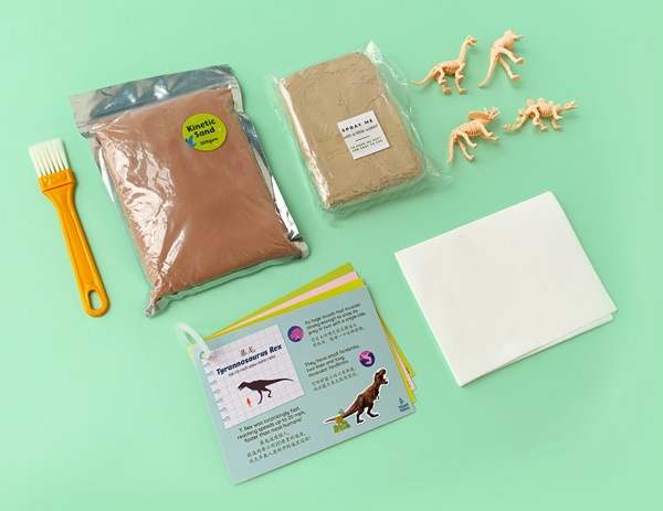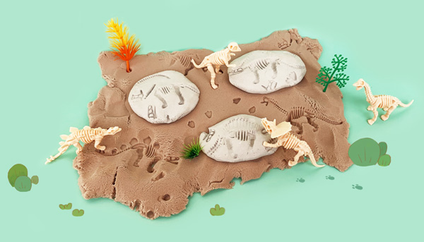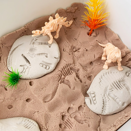 Kinetic sand is like the special ingredient for never-ending dino fun. It doesn’t dry out!