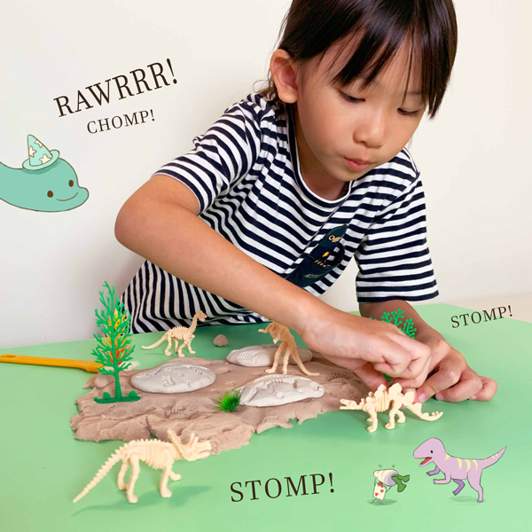 Mold it into dino volcanoes, rocky terrains, or whatever your kid’s creative mind comes up with.