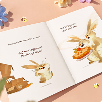 A sweet story for ages 2–6 that sparks curiosity, encourages greetings, and celebrates the joy of meeting new neighbours.